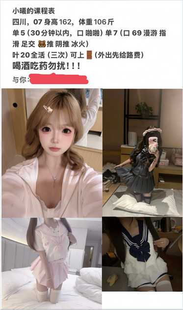 偶然获得这个18岁小女娃的联系方式,本着为人民探路的宗旨,先去探了一波,做下汇报,不爱看字的请绕行。 位置塘沽,市区开车奔袭过去。一步一步指引上楼,娃躲在门后,屋内拉着窗帘没开灯,加上阴雨天气,娃说怕羞不爱开灯,咱尊重。过会视力才缓过来,端详,脸部与照片8-9成像,瘦脸是当下基操,看到照片第一眼时就已经脑中自动还原过了,身材腰条,符合身高160,106斤的状态,不胖,但绝对不是瘦,基本符合预期。从进屋落座沙发后,娃一直表现的很局促,站在那不知说啥,不知干啥,就是那种不知所措的样子。贫僧最喜欢这种青涩的娃儿了,叫过来让坐在我腿上,摸摸小手,摸摸小脸,聊聊天,从四川来,18了。随后因为娃怕羞,所以一前一后去洗澡,真是浪费水资源! 娃浴室出来直接钻被窝,说好冷,其实我知道是怕羞,也不主动,就直直的躺在那裹着被子。贫道钻进被窝,上下其手,小胸脯鼓鼓的,揉捏一番,摸摸下面,毛毛稀疏不扎手,娃说自己脱过毛,这个闷骚的小骚货。接下来舔耳朵怕痒、胳肢窝痒、肚皮也痒,大腿内侧还痒,彻底没啥可玩的了。来吧,展示你的口技,小嘴湿湿暖暖的,无齿感。就是很时间很短,戴套骑上来,小逼里面湿湿暖暖的,娃卖力的上下、上下,娃很敏感,给自己搞得娇喘不止,翻身让娃躺下,娃主动抱着大腿,端详小花园,可惜,不是粉嫩类型。长驱直入,鲜嫩的肉体就是不一样,几十下抽插过后,娃就湿的泥泞不堪,叫声也大了起来,不似少妇那种舒服的释放淫叫,是少女那种既痛苦又享受,即开心又羞赧的压抑呻吟,同时阴道内也随着叫声的升级,开始有节奏的一缩一缩,非常有力,就好像一只软软的小手,在握住我的龙根,一攥一攥,让老夫心猿意马,几乎要喷涌而出。立即停止,几个深呼吸调整以后,让娃翻身狗爬式,撅起屁股。再次长驱直入,双手抓着小肉臀,毫不怜香惜玉的次次到底,听着娃即痛苦又愉悦的叫声,感受着阴道内褶皱给龟头的摩擦。把心中所有的邪念都集中到鸡吧上,疯狂的高速抽插,娃好像被打开了另一个开关,彻底进入癫狂,叫声里带的哭腔,伸手向后探,我一把抓住她的小手,拉着胳膊继续猛操。几十下之后达到兴奋的顶点,喷射而出。射出时,鸡吧一跳一跳,娃的阴道内也一缩一缩,好不舒坦。最后,下床简单冲洗,放下5张在茶几上,道了声拜,出门而去。抬手看表,进门到出门,55分钟。 总结:贫僧80后老登,能这么作践一番07的小姑娘,只5张,无怨无悔。年轻不要指望服务,体验鲜嫩的肉体就完了。没有臭脸,可以换姿势,玩了命的抽插都配合,就已经完胜90%的嫩鸡了。纯属个人观点,不喜勿喷。最后放下娃的两张课表跟现场随手拍的一张娃打扫战场的模糊图,各位感受一下。(两张课表是娃两个不同日期发的,具体也不知道现在在用哪个,自己去问吧