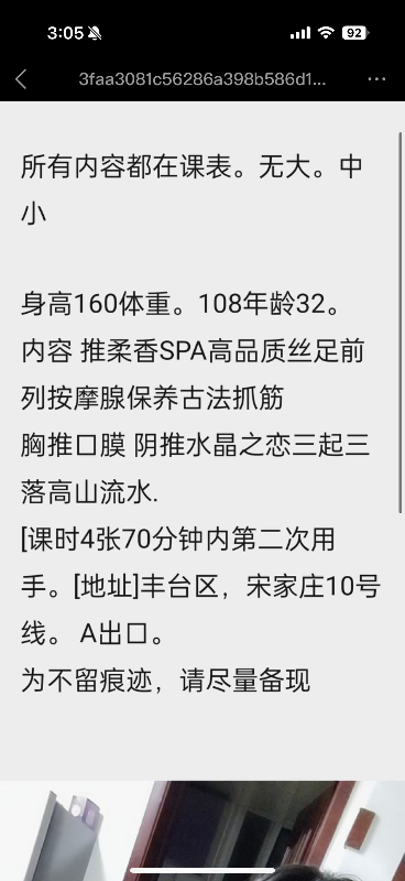推荐一个丝足小姐姐,服务很细节,体验感很棒,到位置遥控上楼,进屋给拿鞋,指引洗澡帮忙擦干身体,上床先趴着做活,一遍服务一遍聊天,感觉很放松,服务AB面的,配合度也很好,只要不是过分要求基本都可以满足,可以放心冲